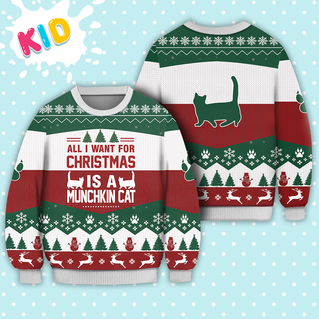 Munchkin Cat All I Want For Christmas Ugly Christmas Sweater – Best Xmas Gifts