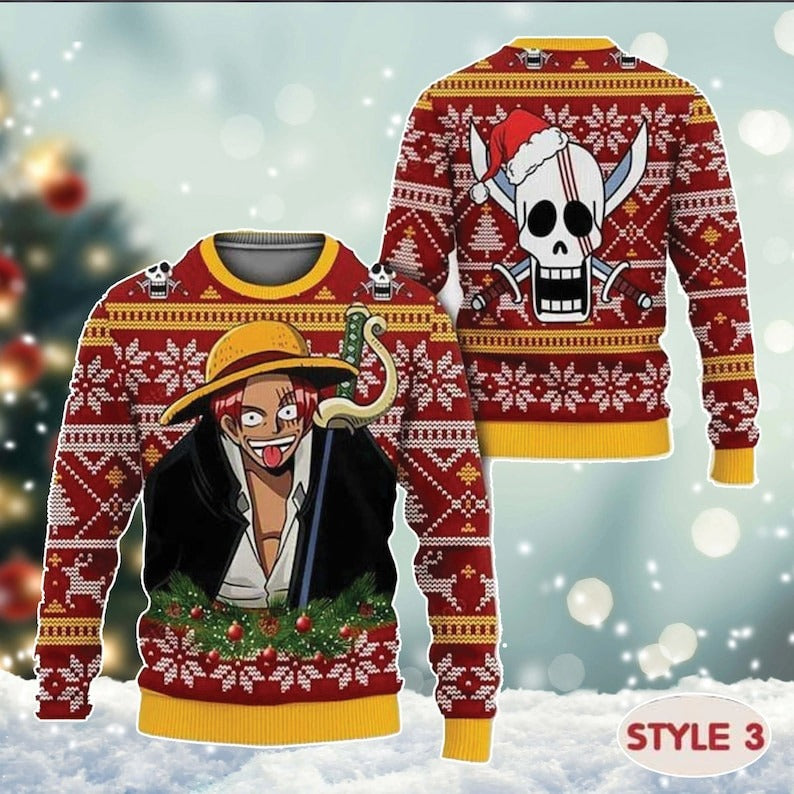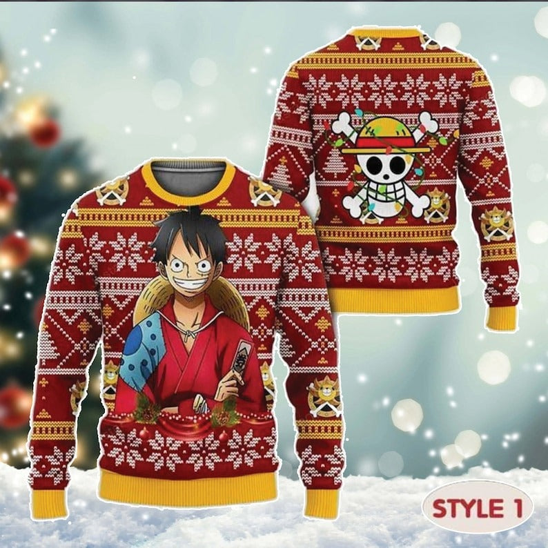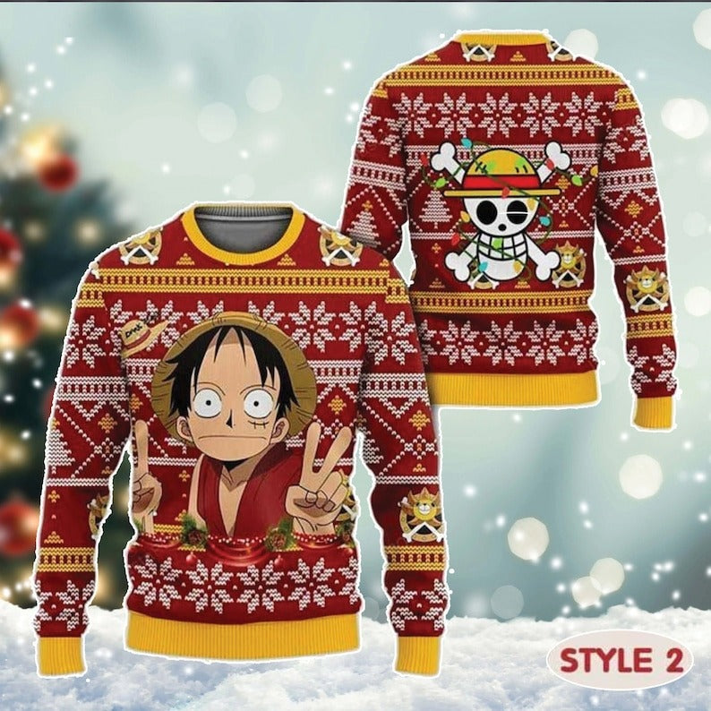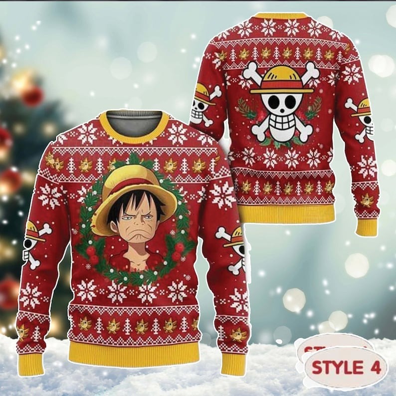 One Pie-Ce Ugly Christmas Sweater, Anime Winter Xmas Sweatshirts, Japanese Manga All Over Printed Sweater, Japanese Cartoon, Christmas Gifts