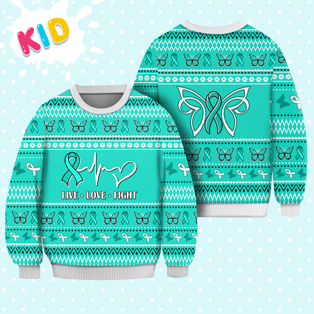 Ovarian Cancer Christmas Sweatshirt Nordic Seamless Knitted Ugly Christmas Sweater – Best Xmas Gifts