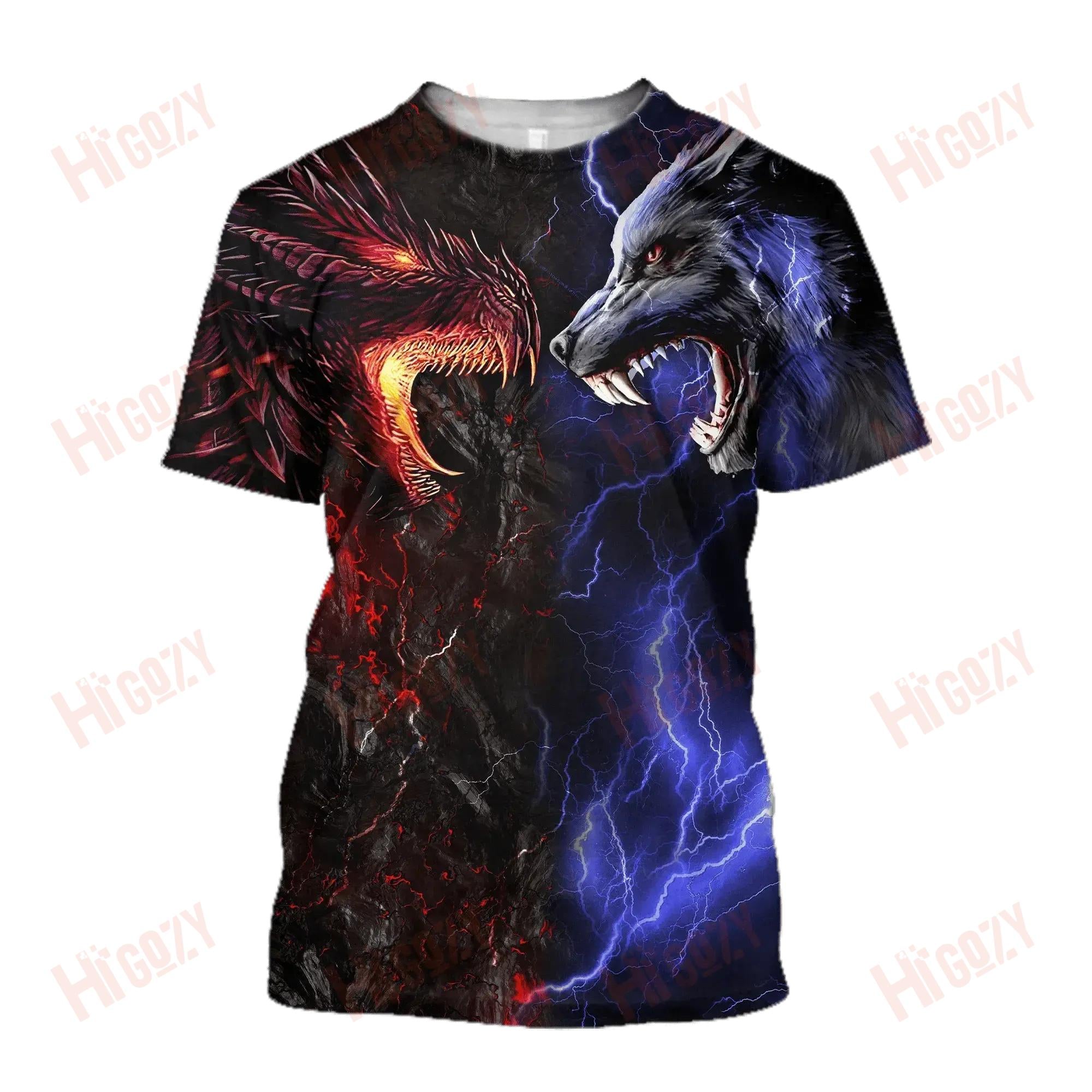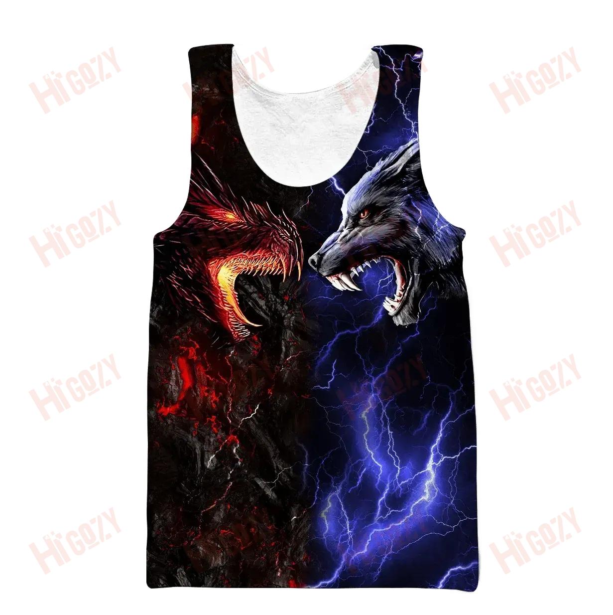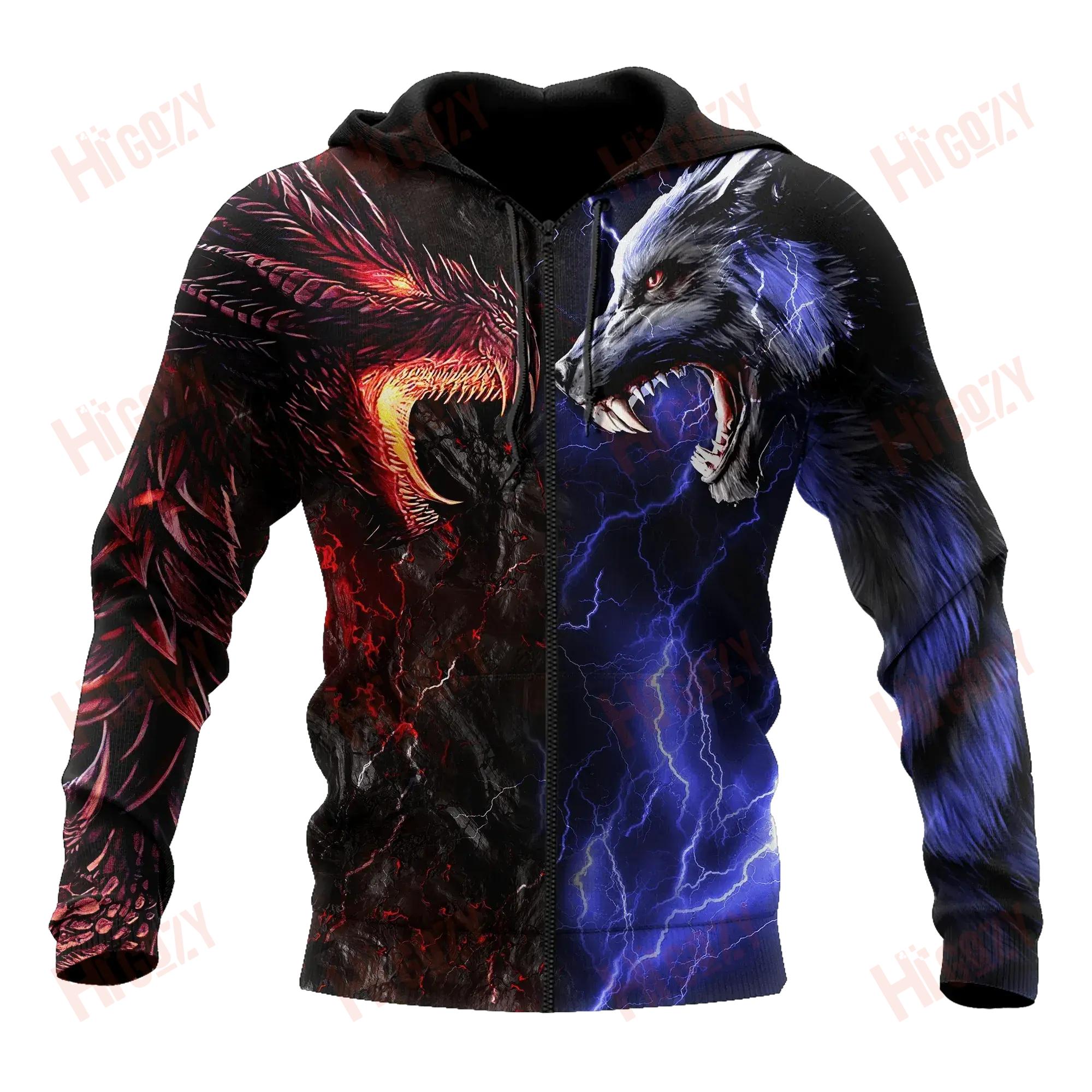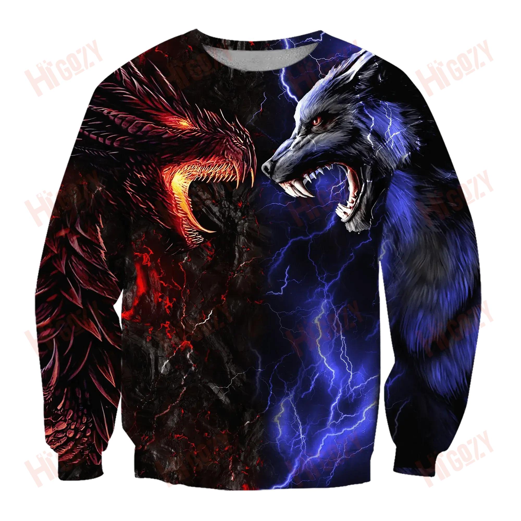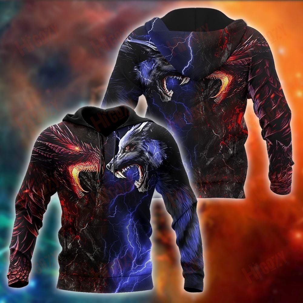 Red And Blue Dragon And Wolf 3D 3D Hoodies Clothing Sweatshirt Designer Hoodies, Hoodies For Women