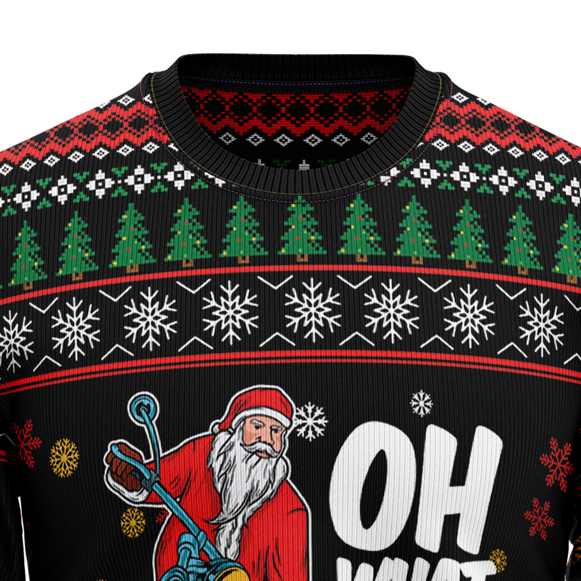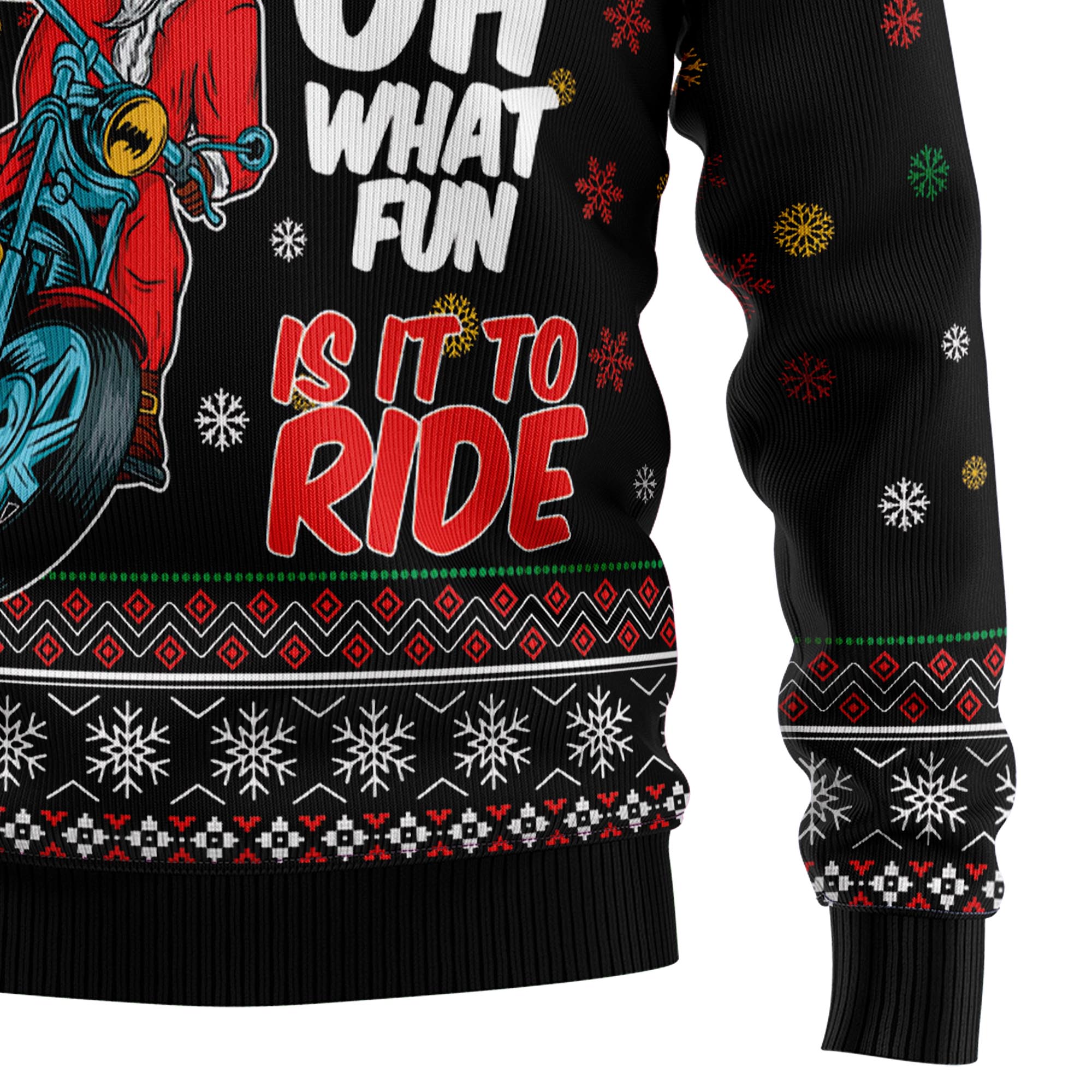 Santa And Motor Christmas Unisex Crewneck Sweater – Christmas Graphic Sweater – Ugly Christmas Sweater