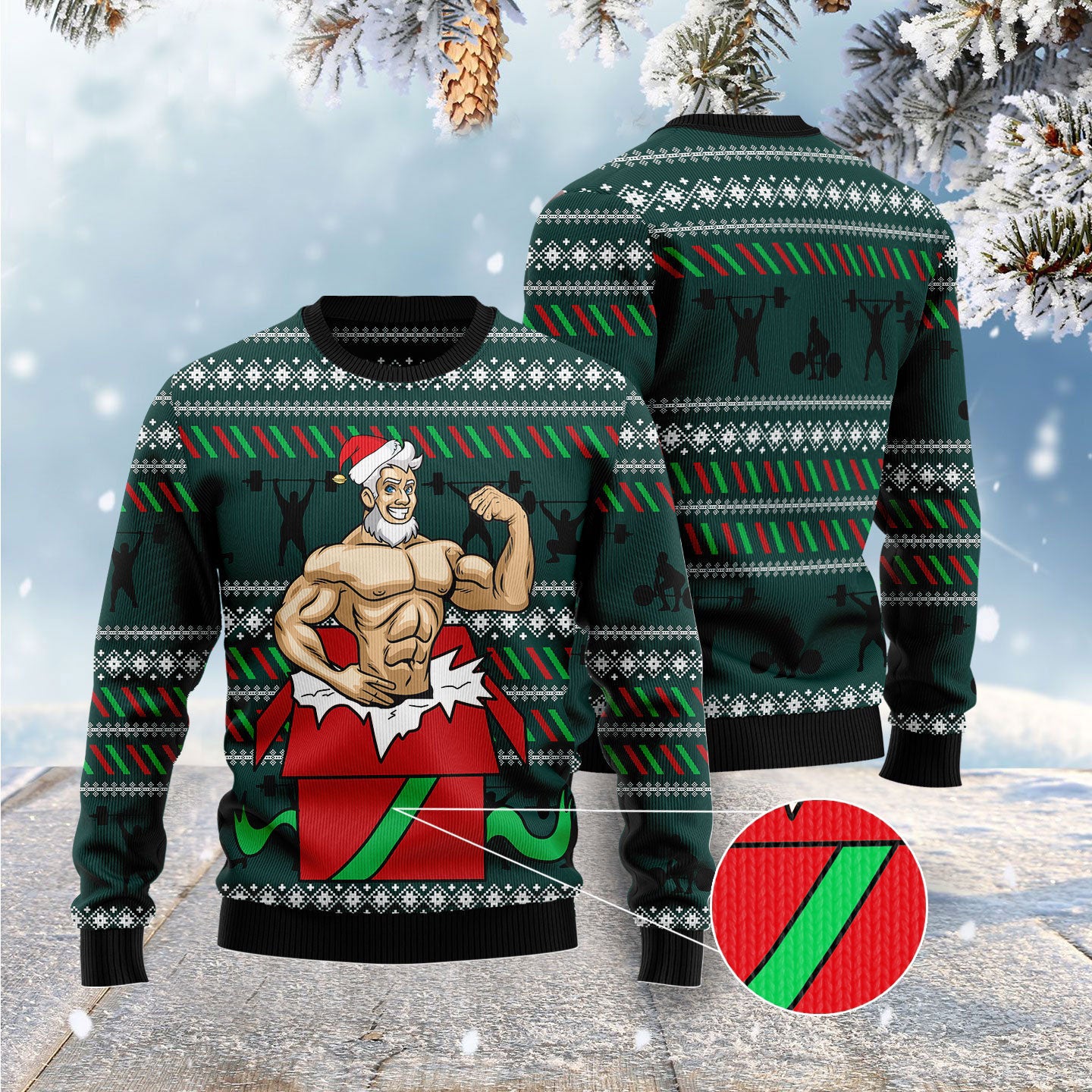 Santa Gymnastic Christmas Unisex Crewneck Sweater – Christmas Graphic Sweater – Ugly Christmas Sweater