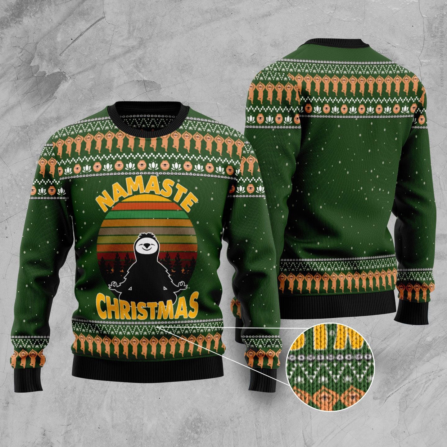 Sloth Namaste Christmas Graphic Sweater – Tis The Season Christmas Sweater – Ugly Christmas Sweater