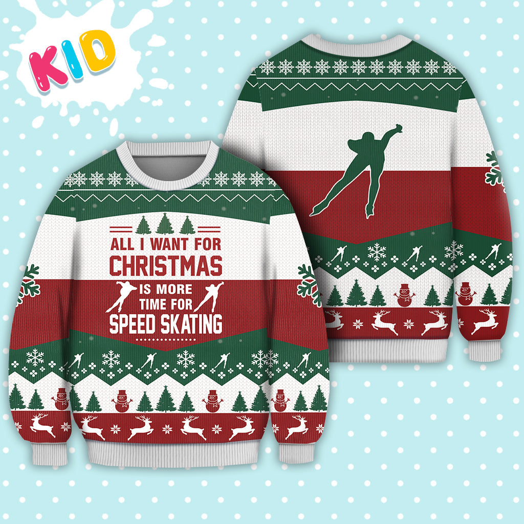 Speed Skating All I Want For Christmas Ugly Christmas Sweater – Christmas Graphic Sweater