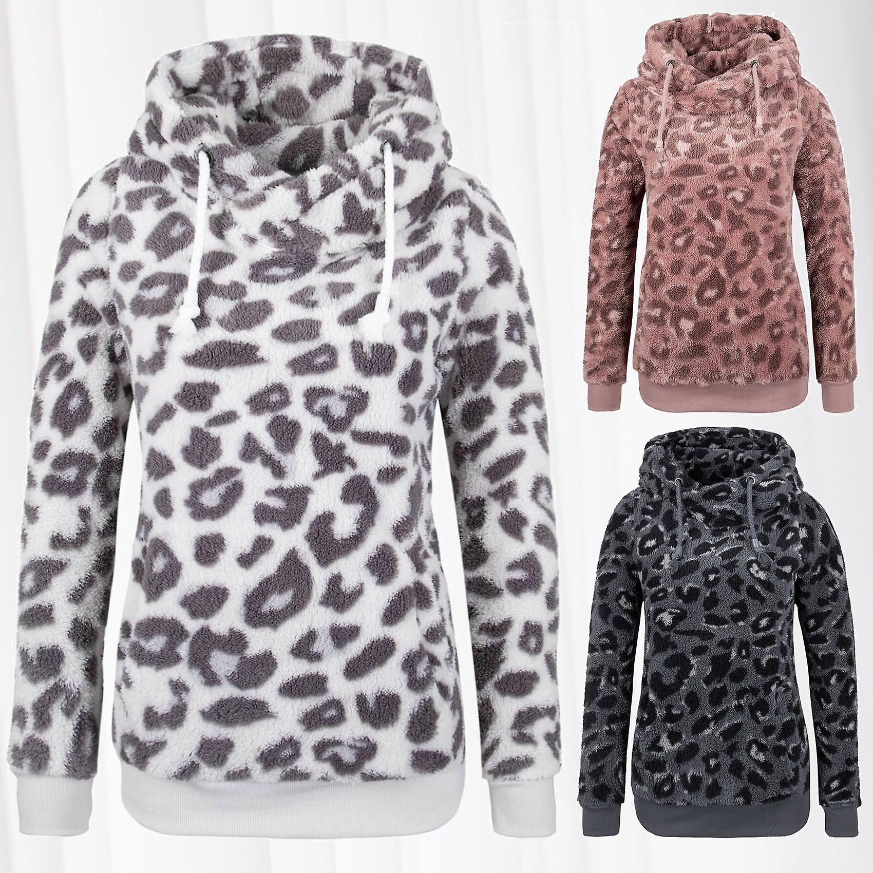 Sublevel Womens Fleece Hoodie Leopard Sweater Pullover Plush Jumper Longsleeve