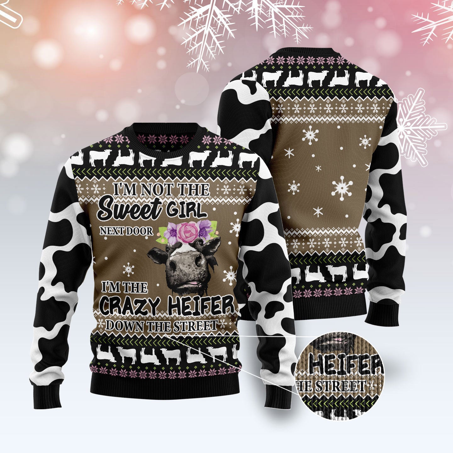 The Crazy Heifer Gift For Christmas – Christmas Unisex Crewneck Sweater – Ugly Christmas Sweater
