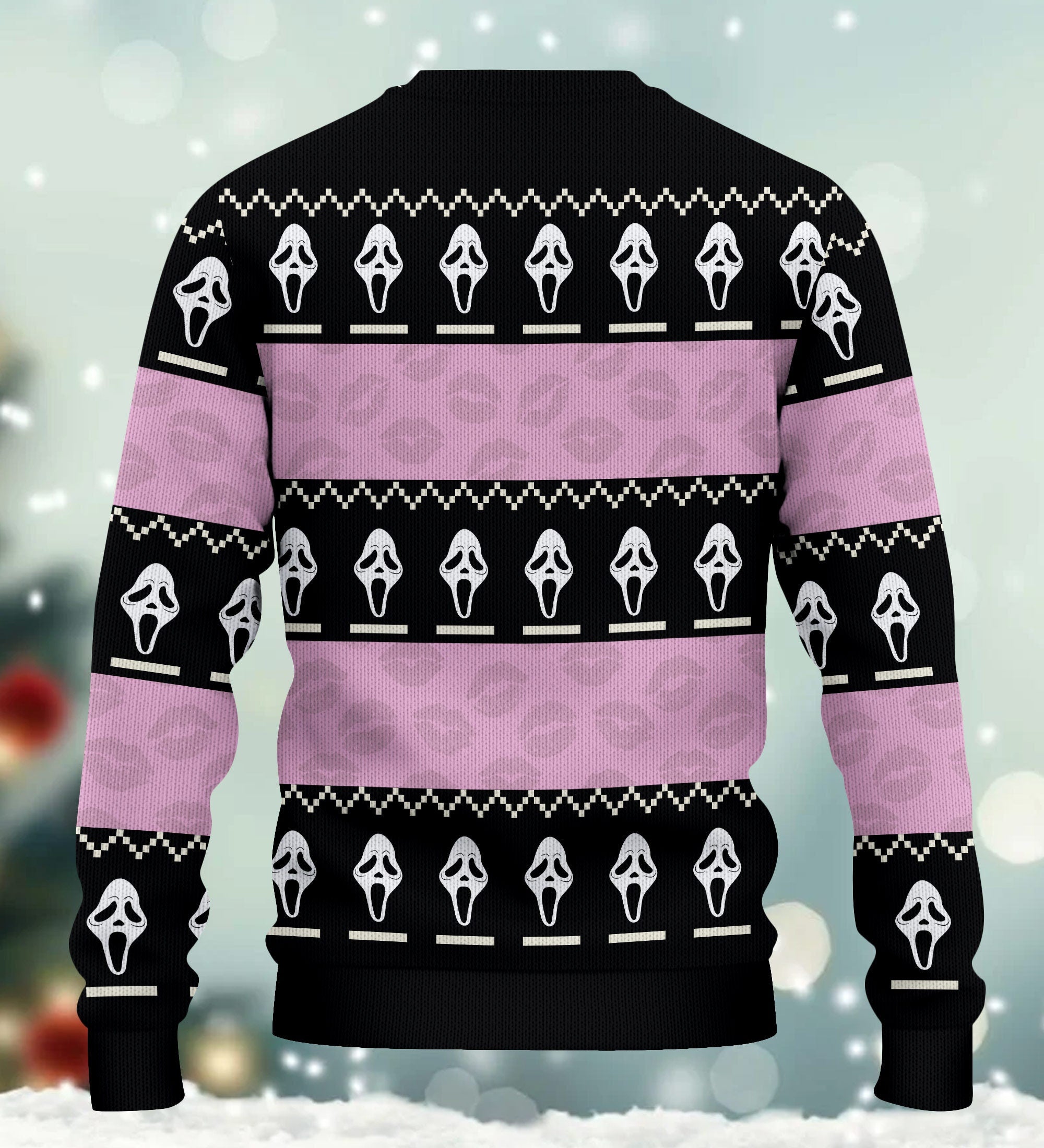 Ugly Horror Character Sweater Ghostface Halloween, Ghostface Ugly Sweater Gift For Halloween, All Over Print Sweater, Ugly Sweater