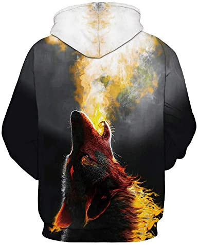 Unisex 3D Printed Hooded Wolf Gruzz Fire Sweatshirt Mens Hoodie Womens Pullovers Wolf Painting