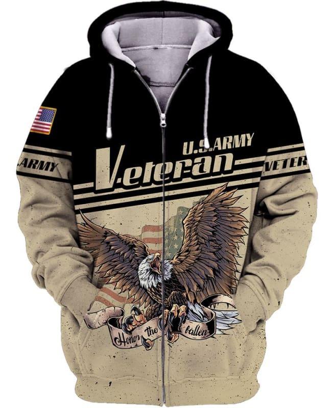 Us Army Veteran Honor The Fallen Eagle American Flag All Over Print T-Shirt Zip Hoodie Sweater – Cp0027