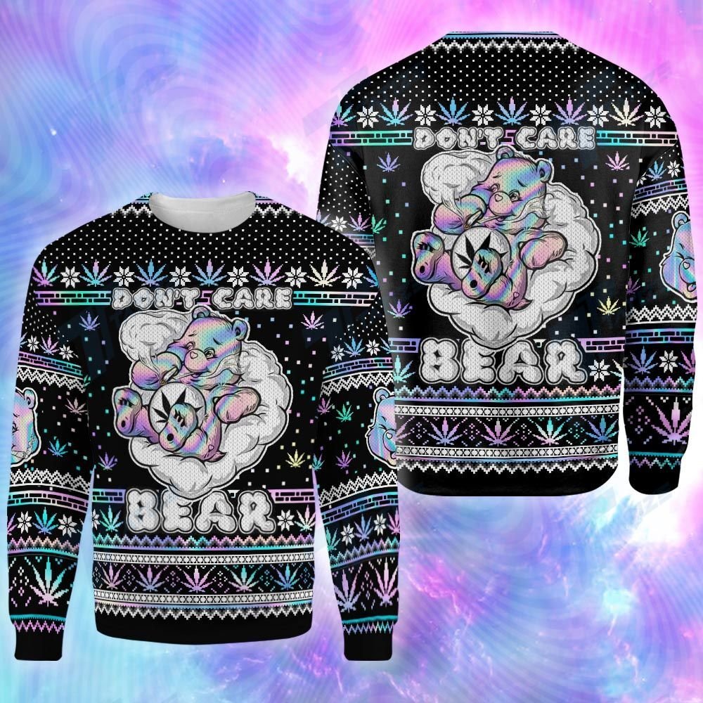 Weed Dont Care Bear Ugly Sweater 3D All Over Printed Shirt, Sweatshirt, Hoodie, Bomber Jacket Size S – 5Xl