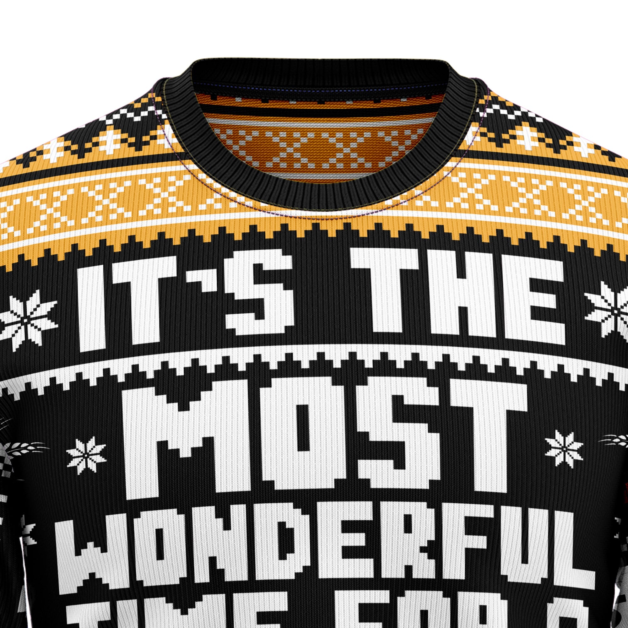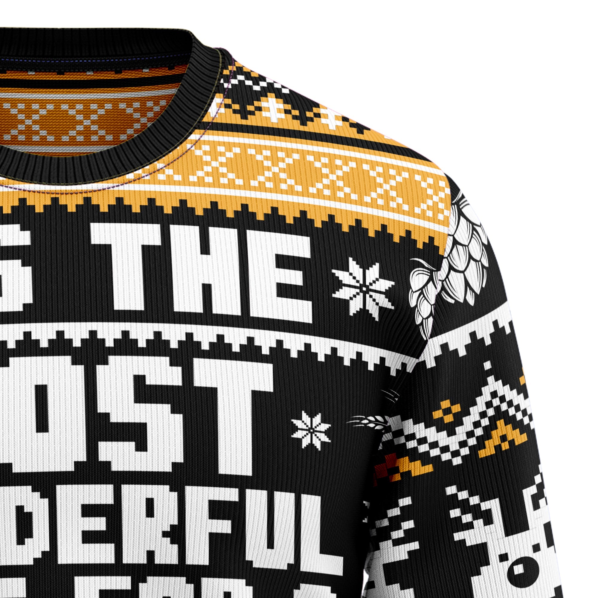 Wonderful Time For A Beer – Christmas Crewneck Sweater – Ugly Christmas Sweater